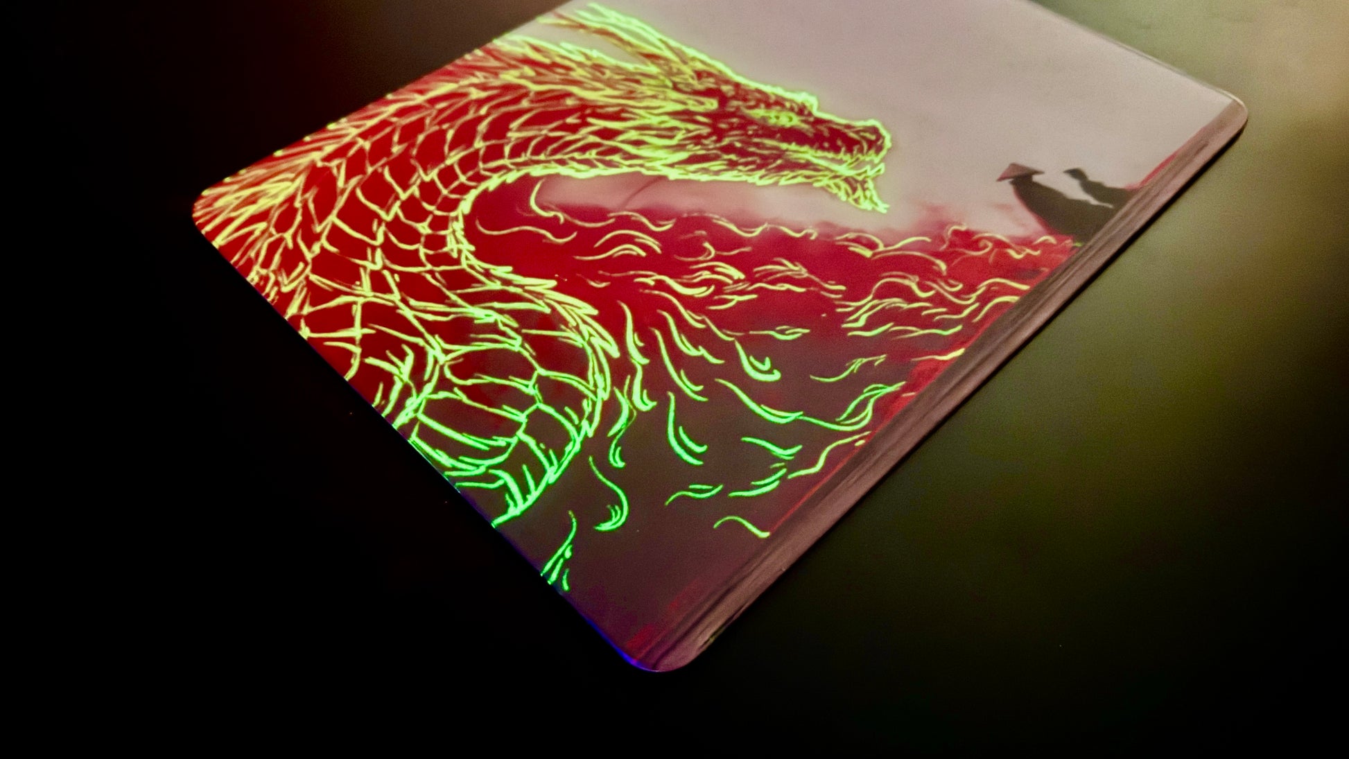 Designed for esports athletes and tactical shooters, the Dragon Edition features military-grade tempered glass precision and a HexaGrip™ anti-slip base for unshakable stability. When light hits the etched surface, every motion feels effortless and controlled.