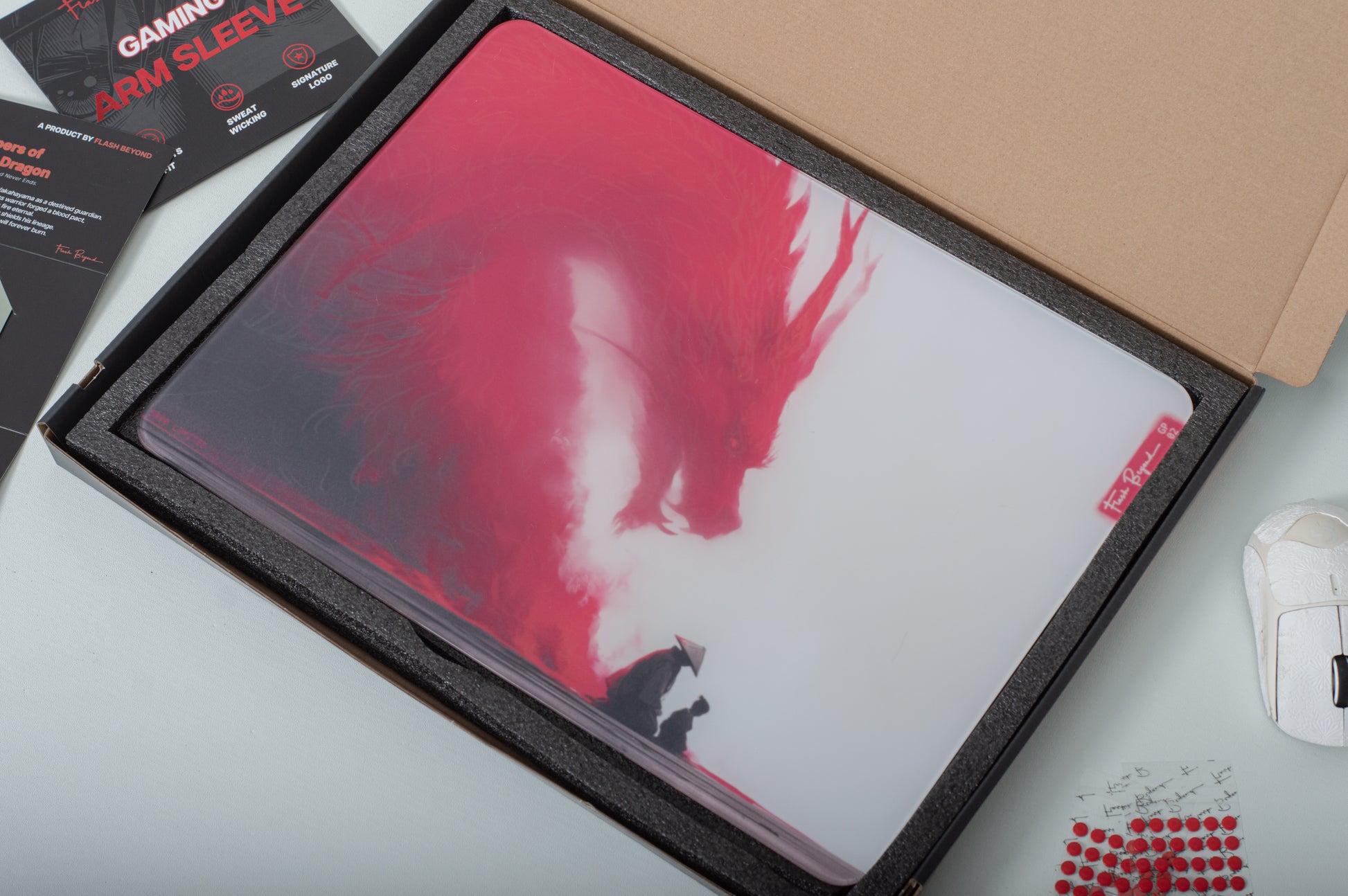 Ships before November 11th. Secure yours now and be among the first to own the FlashBeyond × LYRA “Dragon Edition” glass mouse pad — a collaboration with digital artist LYRA, whose stunning crimson dragon artwork has earned over 1.6 million likes on Instagram.